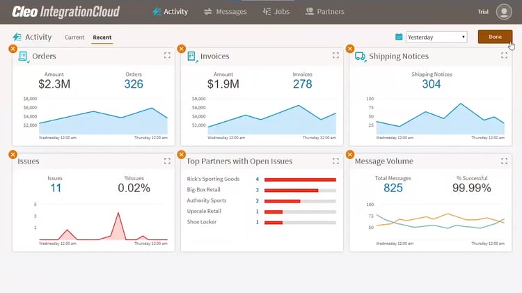 Cleo can be used to manage your entire file transfer environment through APIs and EDI capabilities.